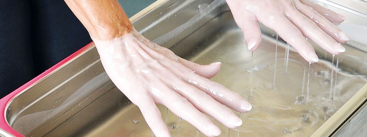 Cvičenie s drobnými kĺbmi rúk v teplom suchom hrubozrnnom piesku prehriatom na 45 – 50°C v trvaní 10 min. Zabezpečuje zlepšenie pohyblivosti kĺbov, ústup opuchu a stuhnutosti prstov.